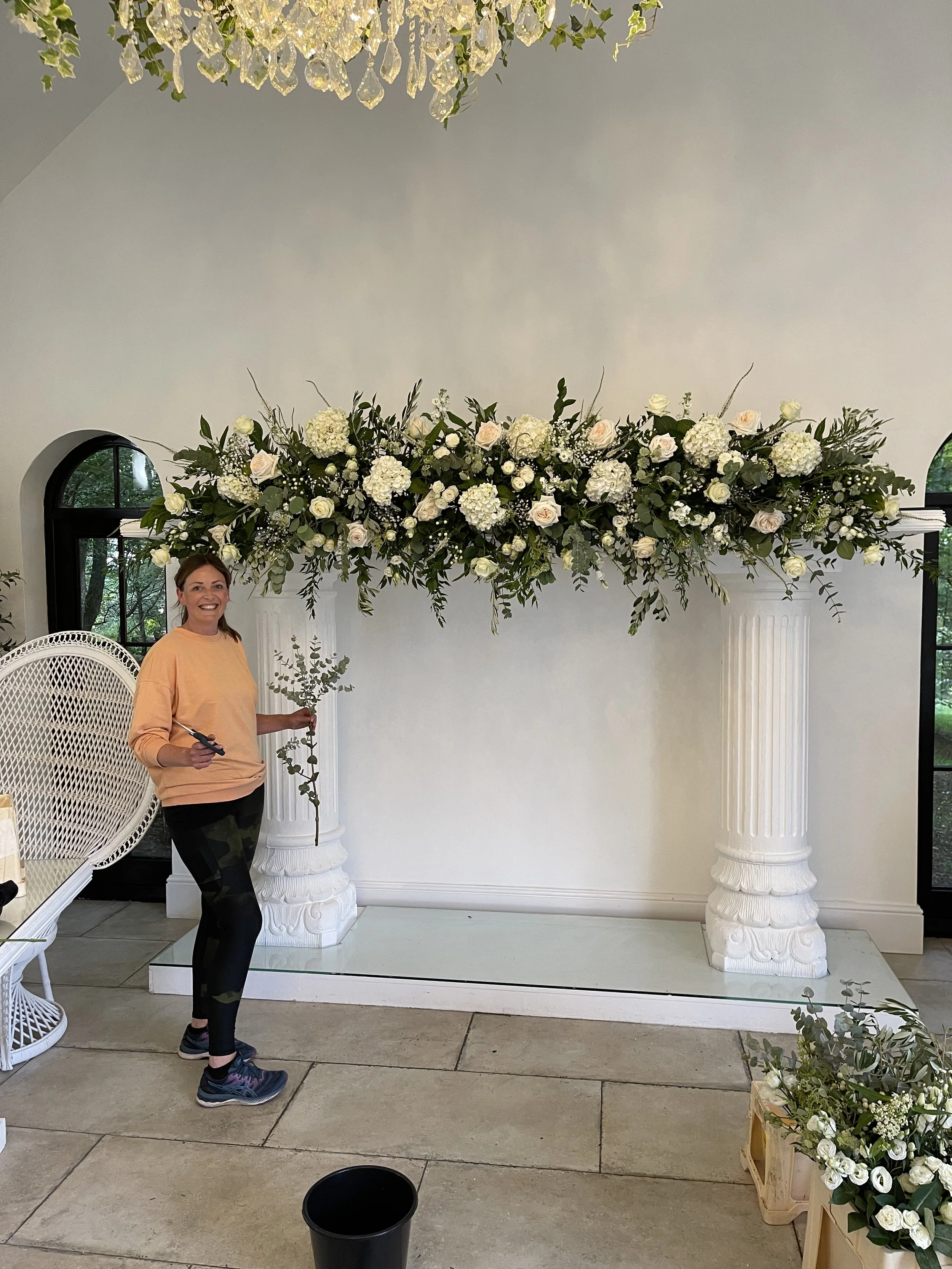 I make all floral designs from my home studio, but for larger installations like the image opposite, I will work on-site to fill a space perfectly.